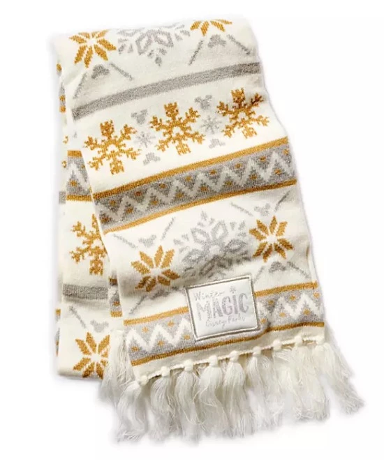 You’ll look precious this holiday in our silver and gold knit scarf. The snowflake design will provide a fashionable taste of the Disney Parks’ ”Winter Magic,” ensuring this becomes a warm favorite.